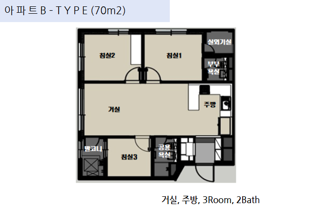 지상 1층~2층 : 관리실, 커뮤니티공간, 근생 3호